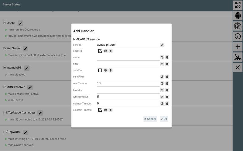 | TcpWriter | AvNav ermöglicht es einer anderen App oder einem anderen System, sich zu verbinden und Daten zu empfangen. AvNav ist hier der TCP-Server. |